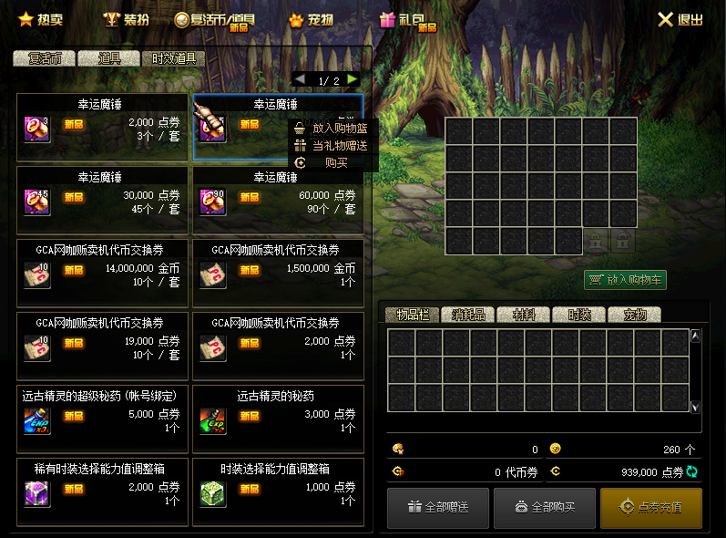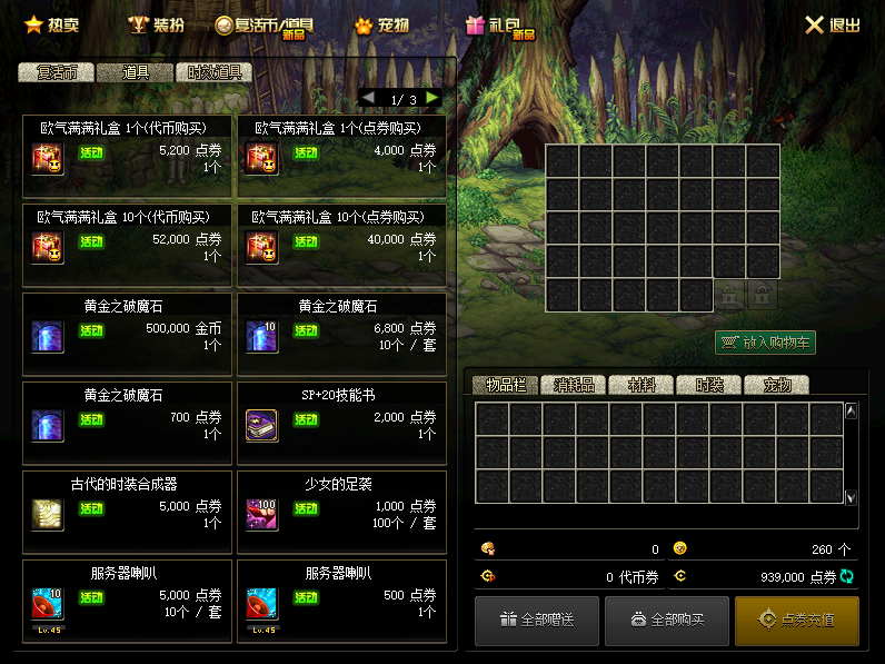 商场欧气满满礼盒可开顶级称号、顶级宠物、强化券、强化保护券、光环、泰拉石升级图纸以及稀有值钱宝珠每开一次都附送深渊票 注:5200欧气礼包是代币买 4000欧气礼包只能点券买