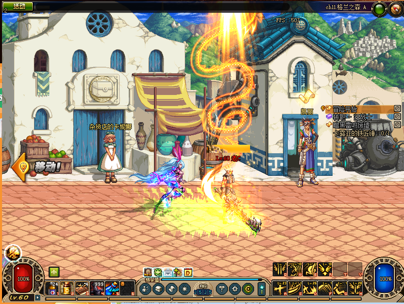 跟赛利亚对话会给你一个箱子:里面有送一套传承3件套防具跟首饰还有武器,以及经验书(直升33级),这套可以单刷轻松达到60级。