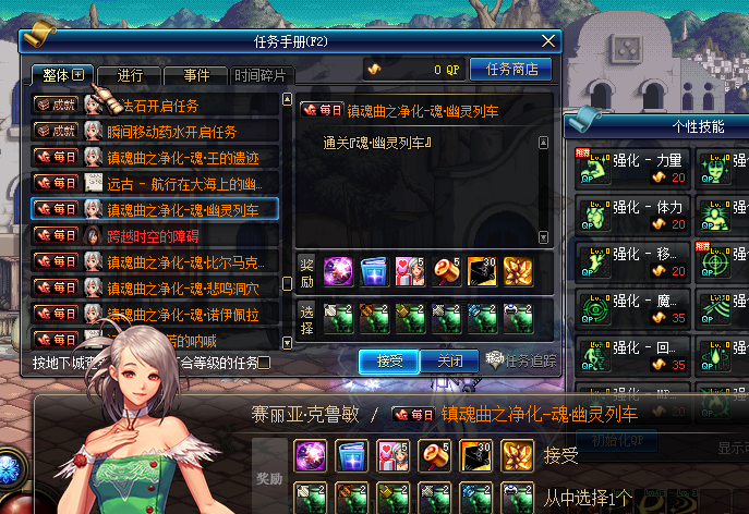 赛利亚处有每日签到,每日消耗100点疲劳可以获得签到币,在赛利亚商店兑换签到奖励,