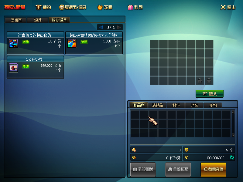 5、添加各种消耗品超能雷米,雷米蛋糕等,(商城、大转移npc商店、巨龙商店、赛利亚商店)