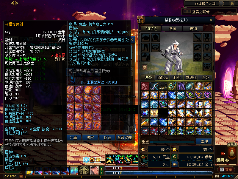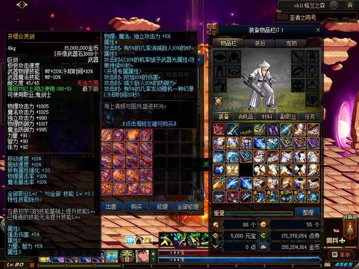 5.七职业顶级完美二觉【鬼剑士,男枪手。女枪手,男格斗,女格斗,魔法师,圣职者(蓝拳没二觉技能等)】