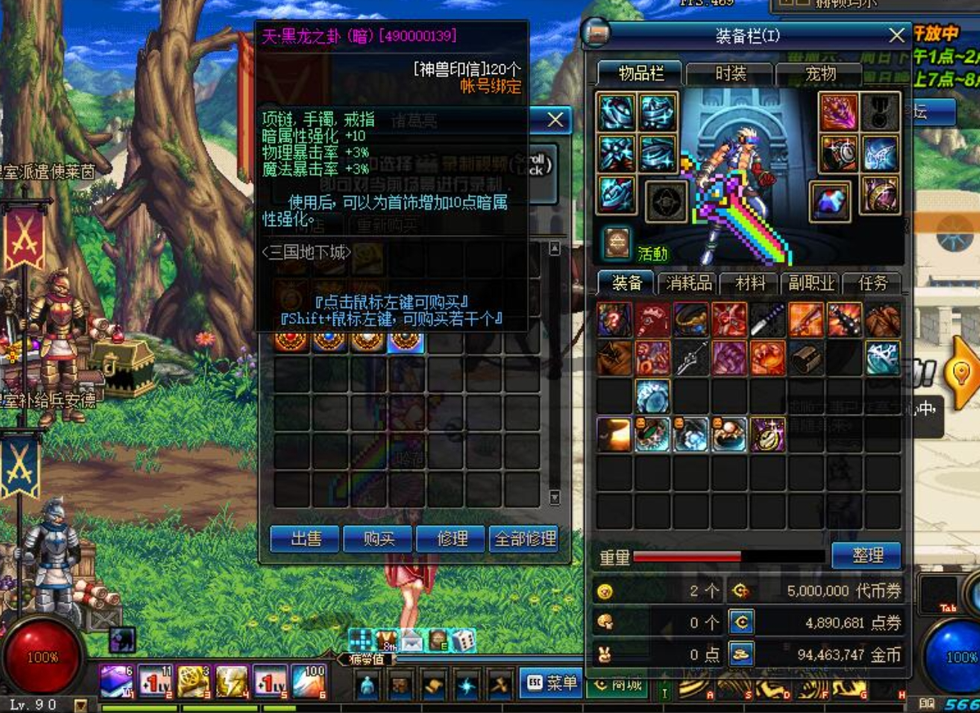 【5】.新角色可以直接刷封印的藏宝地,在格兰之森进入,几把地狱级全图就可以到达满级,门票可以在商城买导航人偶100w一个。