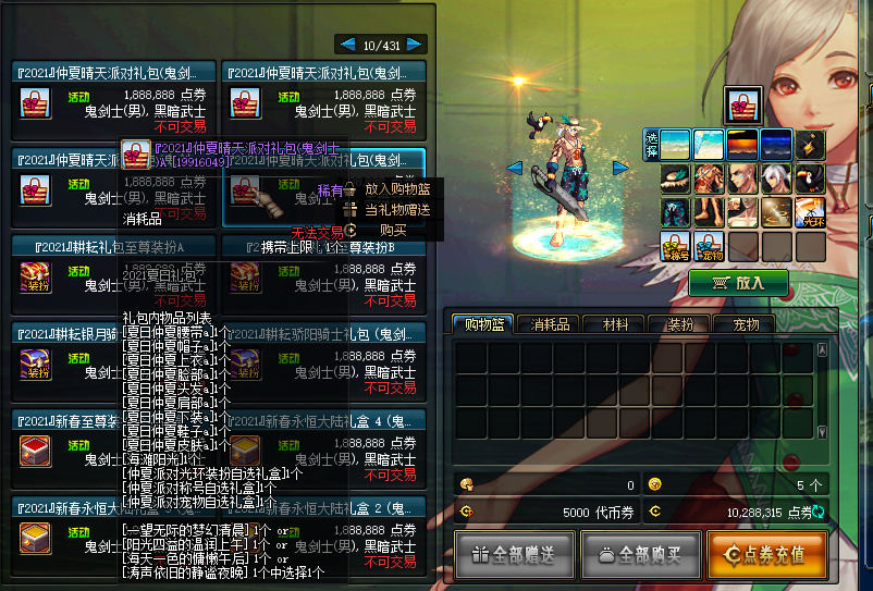 2021仲夏晴天派对时装散件+光环+称号+宠物