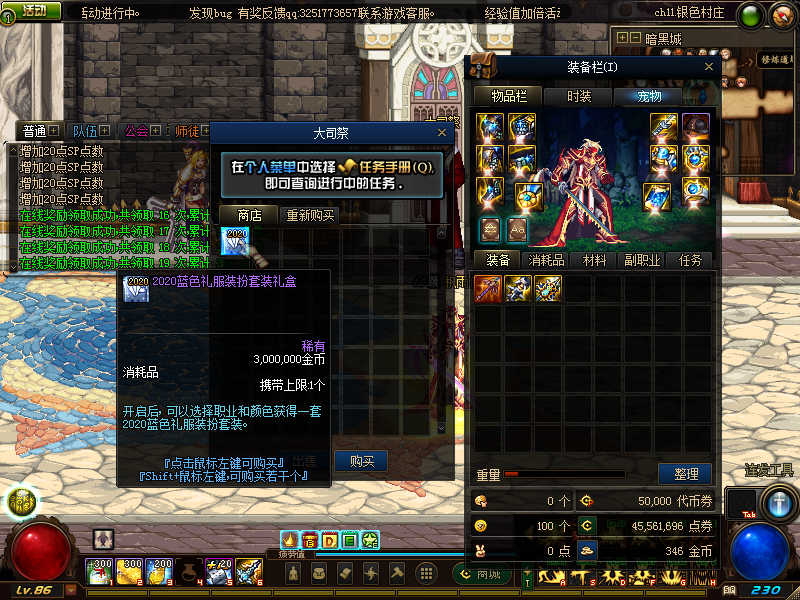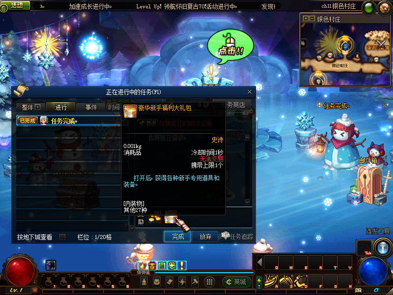 创建完角色点赛丽亚完成新手任务,获得新手豪华大礼包,内含和一堆新专用的东西。