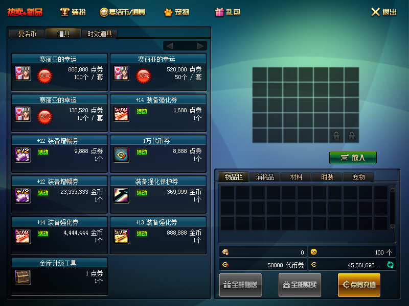 商城 增幅券 强化券 保护券 —— —— ——