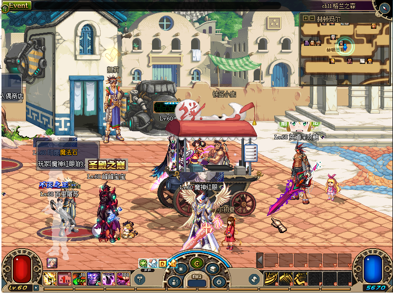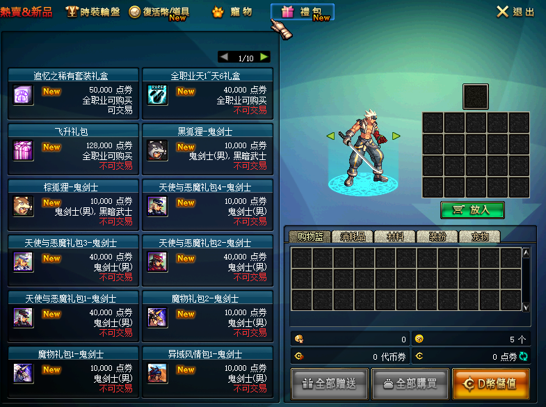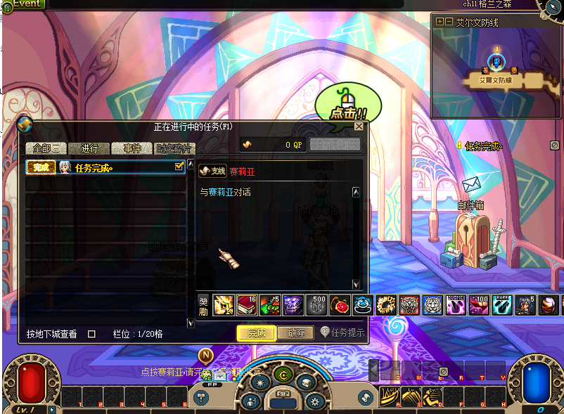 3:进入游戏 后创建自己喜爱的角色及职业,进入游戏后塞利亚接新手礼包!有50个升级卷,cc套,武器首饰称号 吃完后需自己手动升到满级