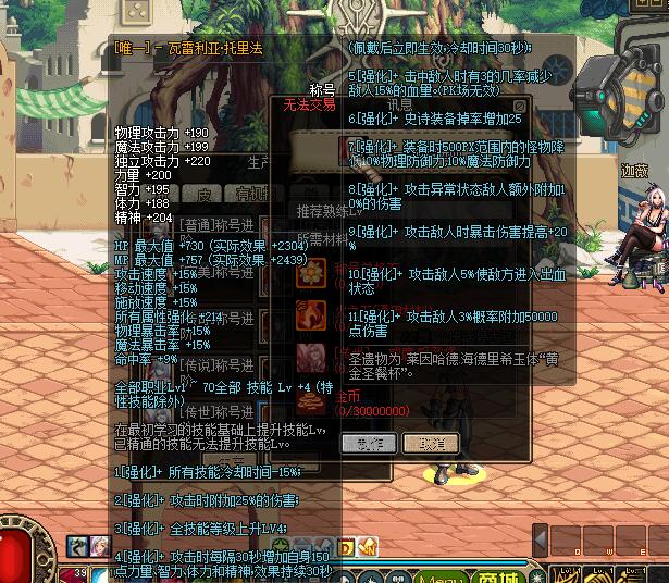 超级称号:凯丽下面 迦薇NPC,1阶开始升级,不可跳级!另:魔盒会开出很多称号,有强大属性的,看脸!