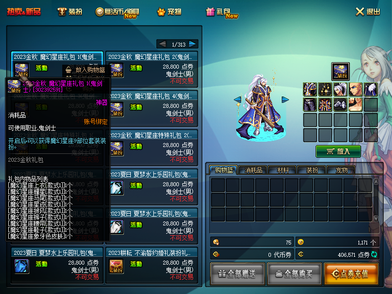 2023金秋礼包散件时装+武器装扮+光环+称号+至尊套装+宠物