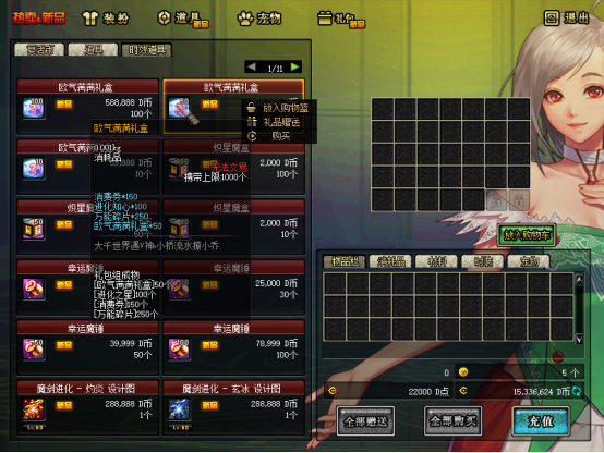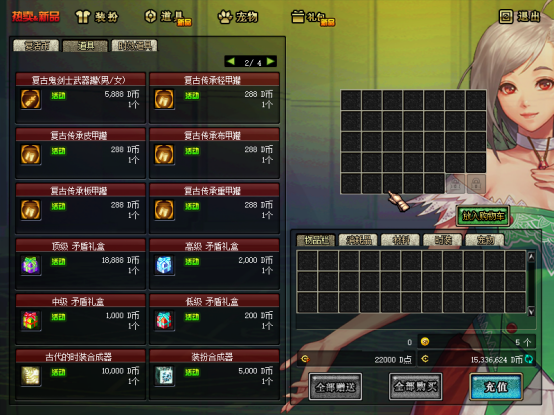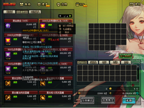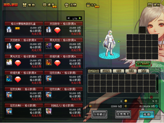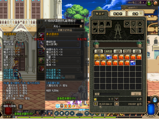 建议用GM工具发点券,先买一套天空套,属性加成可观